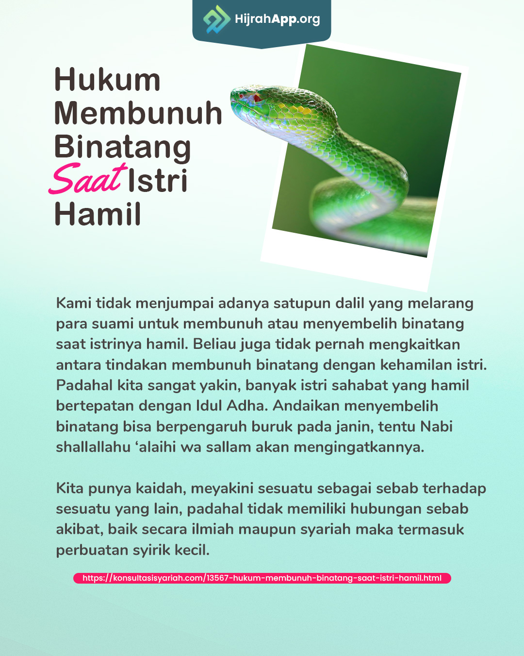 sumber: https://konsultasisyariah.com/13567-hukum-membunuh-binatang-saat-istri-hamil.html