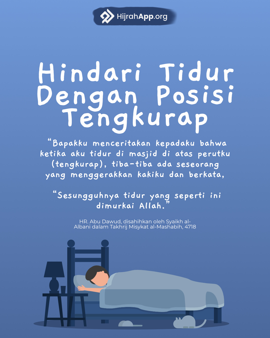 Dari Abu Hurairah radhiallahu ‘anhu, bahwasanya Rasulullah Shalallahu ‘alaihi wa sallam melihat seorang Laki-laki muslim tidur tengkurap, kemudian beliau bersabda,