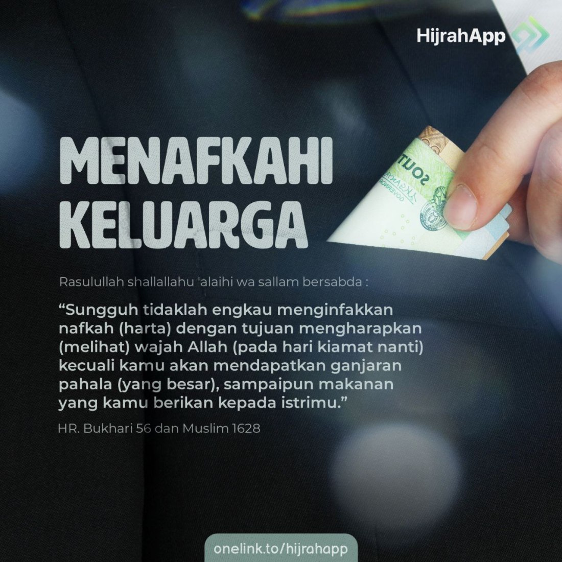 Dari Abu Hurairah Radhiyallahu ‘anhu, ia berkata: Nabi Shallallahu ‘alaihi wa sallam telah bersabda, ”Sesungguhnya Allah tidak memandang kepada rupa kalian, juga tidak kepada harta kalian, akan tetapi Dia melihat kepada hati dan amal kalian”.