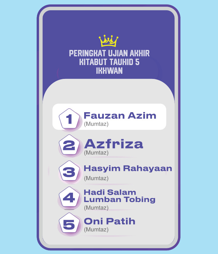 Bagi ikhwah yang belum lulus, jangan putus asa, tetap semangat belajarnya.! adapun hasil ujian saat ini mudah-mudahan menjadi cambuk untuk terus semangat belajar tauhidnya💪
