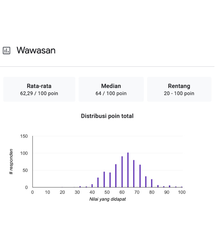 533 peserta mencapai target kelulusan (min 50% jawaban benar) dan berhak untuk memperoleh e-sertifikat yang akan dikirim maksimal dalam 1 pekan ini.