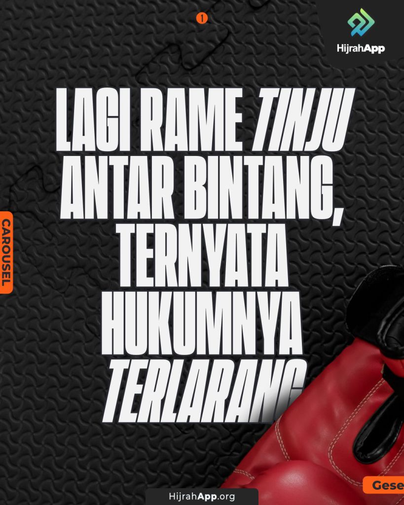 Lagi rame tinju antar bintang, hingga berjuta-juta orang yang nyimak pertandingannya. Tapi ternyata hukumnya terlarang. #carousel ^125 Abu Uwais fiqh November 23, 2023November 22, 2023 1 Minute Bagikan ini: Bagikan di X(Membuka di jendela yang baru) X Bagikan pada Facebook(Membuka di jendela yang baru) Facebook Suka Memuat... Terkait Diterbitkan oleh Abu Uwais Lihat semua pos milik Abu Uwais Telah Terbit November 23, 2023November 22, 2023