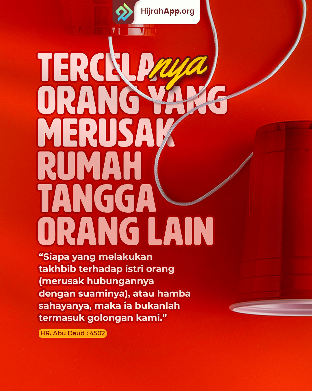 ”Barang siapa yang merusak hubungan seorang wanita dengan suaminya maka dia bukan bagian dari kami.”( HR. Ahmad, shahih)
