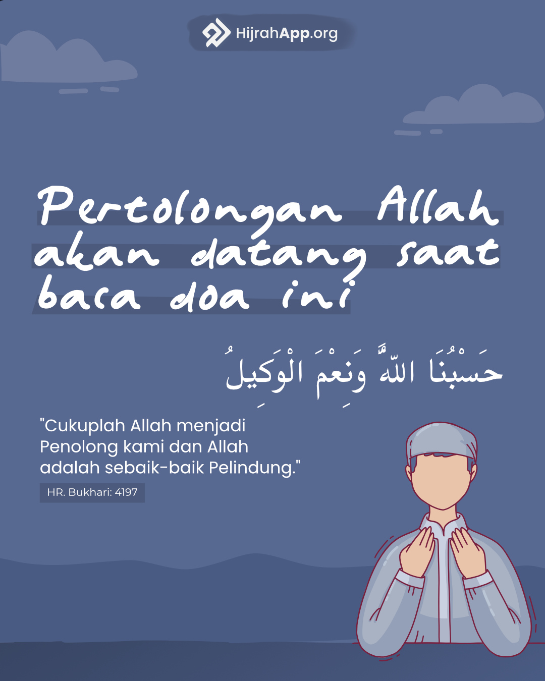 (Yaitu) orang-orang (yang mentaati Allah dan Rasul) yang kepada mereka ada orang-orang yang mengatakan, “Sesungguhnya manusia telah mengumpulkan pasukan untuk menyerang kamu, karena itu takutlah kepada mereka”, maka perkataan itu menambah keimanan mereka dan mereka menjawab, “hasbunallah wa ni’mal wakiil [cukuplah Allah menjadi Penolong kami dan Allah adalah sebaik-baik Pelindung]. ” (QS. Ali ‘Imron: 173)