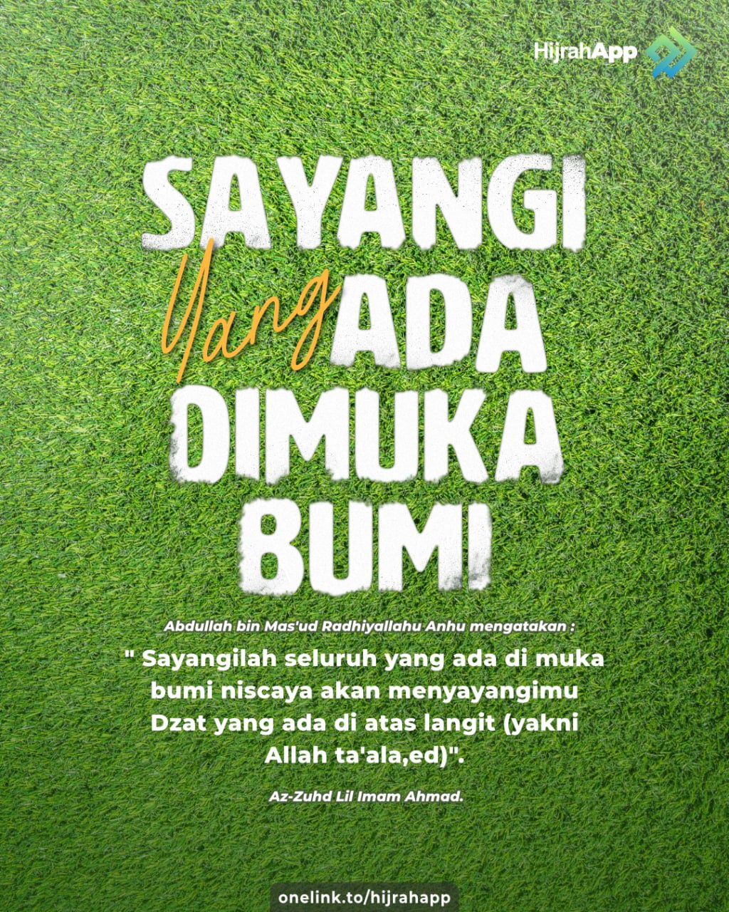 “Orang-orang yang mengasihi dirahmati oleh Ar-Rahman (Yang Maha Pengasih), kasihilah yang ada di bumi nicaya Yang di langit akan mengasihi kalian” (HR Abu Dawud)