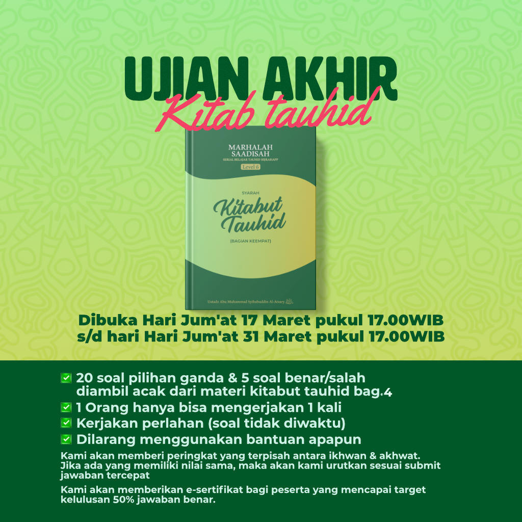 *Materi kitabut tauhid berikutnya insyaallah akan dimulai kembali pada pertengahan April 2023 mendatang.