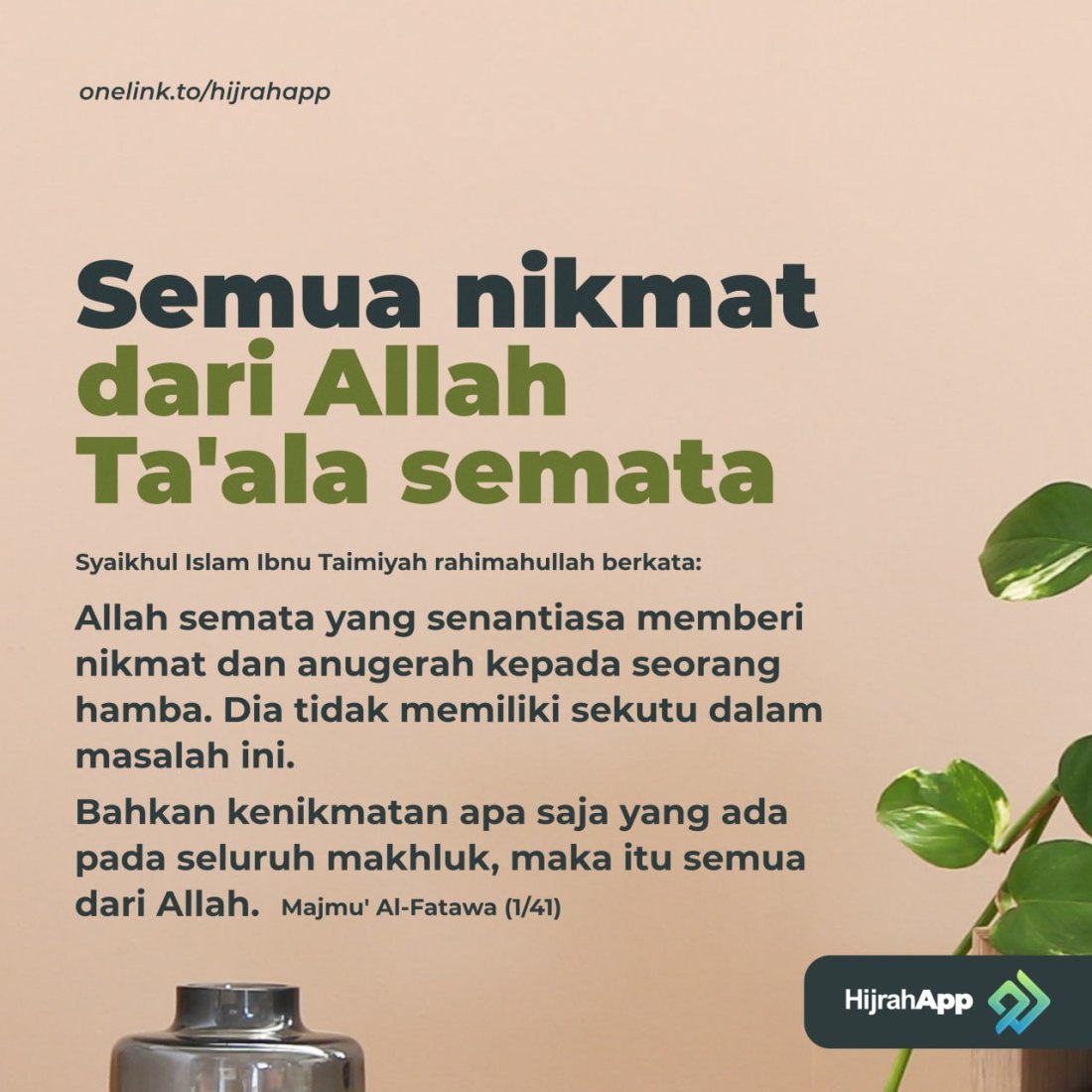 “Dan apa saja nikmat yang ada pada kamu, maka dari Allah-lah (datangnya)”. (Qs. An Nahl: 53)