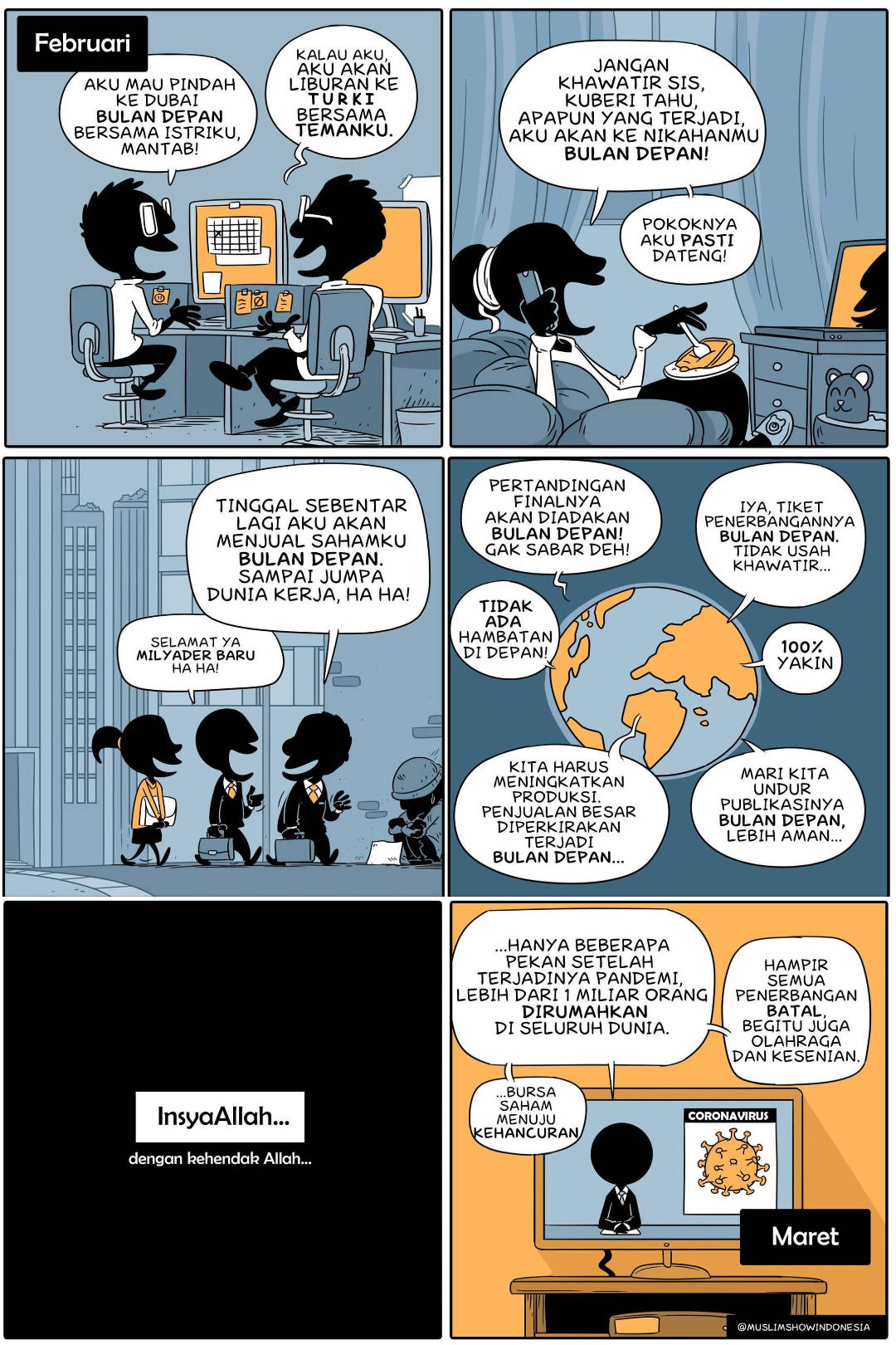 Saudaraku, ungkapan di atas sesungguhnya bisikan dan waswas setan. Dalam urusan akhirat, manusia dibujuk untuk meninggalkan amalan dan bersandar kepada takdir. Namun, dalam urusan dunia, setan terus mengembuskan syahwat dunia sehingga seseorang berambisi terhadapnya dan melupakan negeri akhirat. Siang malam keringat diperas, semua kekuatan dicurahkan untuk mengais emas dan perak.