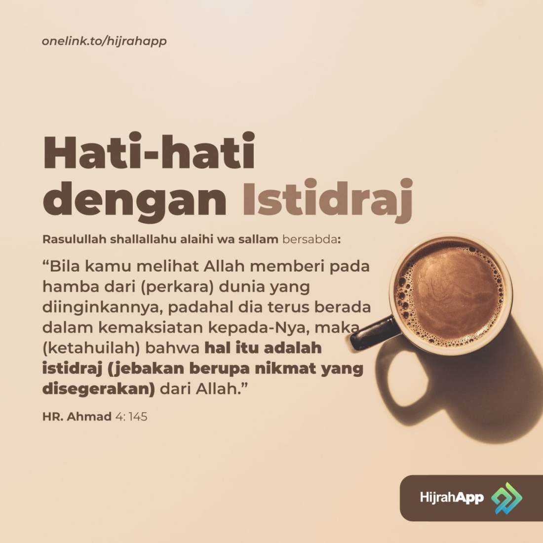 Dari Abu Hurairah Radhiyallahu anhu, ia menuturkan, bahwa Rasulullah Shallallahu ‘alaihi wa sallam bersabda: