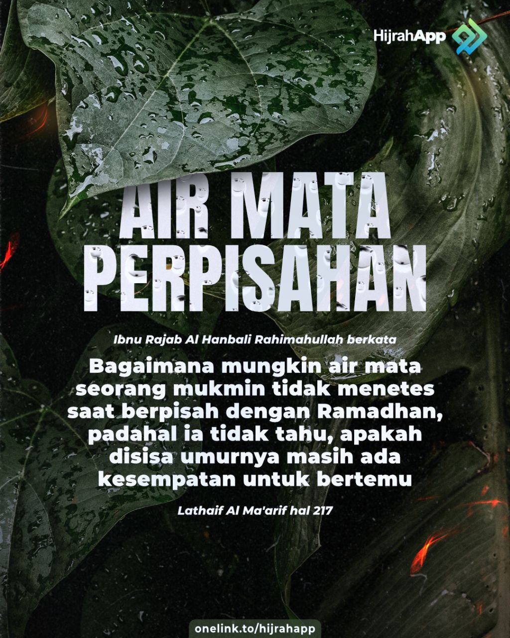 “Bagaimana bisa seorang mukmin tidak menetes air mata ketika berpisah dengan Ramadhan, Sedangkan ia tidak tahu apakah masih ada sisa umurnya untuk berjumpa lagi.