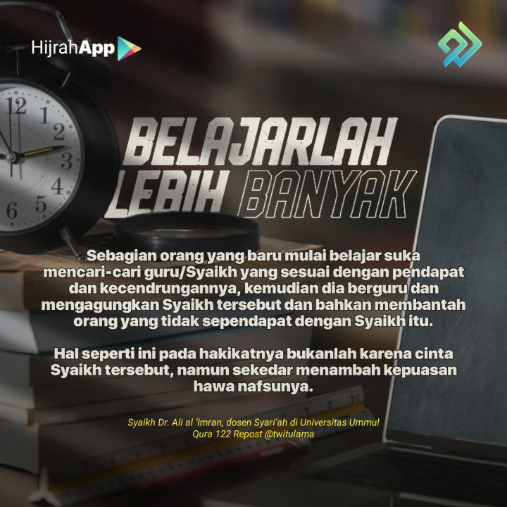 - Kelima , tidak menjadikannya sebagai obat untuk segala macam penyakit hati dan mencari obat penyakit hati tersebut dengan selainnya, serta tidak mengambilnya sebagai obat (bagi penyakit-penyakit badan, pen.). Walaupun sebagian bentuk ‘hajr’ tersebut lebih ringan dari sebagian yang lain.” [2]