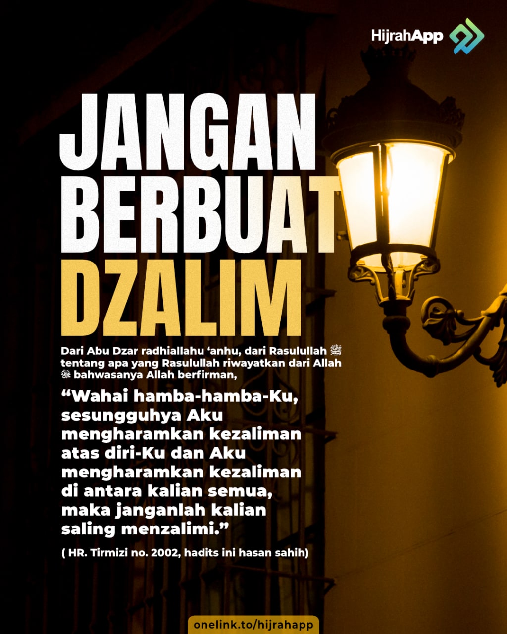 “Allah Tabaaraka wa ta’ala berfirman: ‘wahai hambaku, sesungguhnya aku haramkan kezaliman atas Diriku, dan aku haramkan juga kezaliman bagi kalian, maka janganlah saling berbuat zalim’” (HR. Muslim no. 2577).