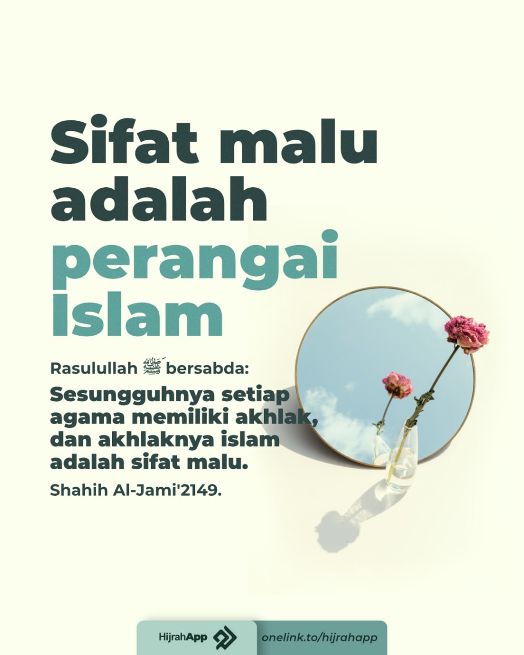 “ Sesungguhnya setiap agama memiliki akhlak, dan akhlak Islam adalah malu .” [8]