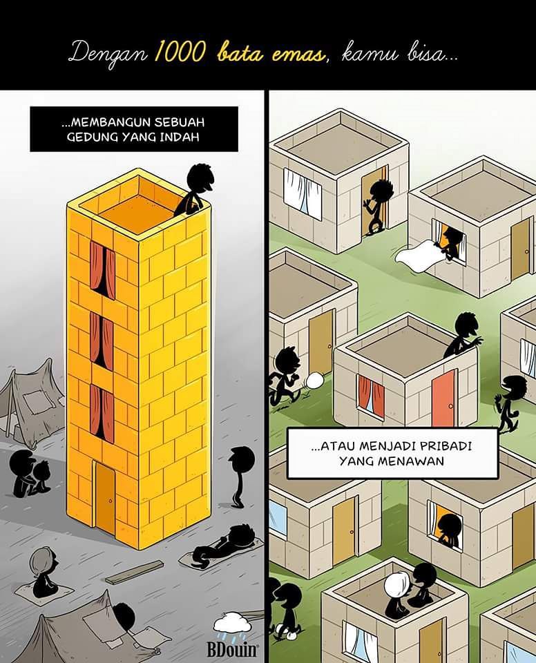 Boleh jadi di antara mereka yang tidak memiliki kebutuhan pokoknya setiap harinya, akan tetapi dia adalah seorang yang benar-benar bahagia dan bergembira bagaikan pemilik dunia dan segala isinya.