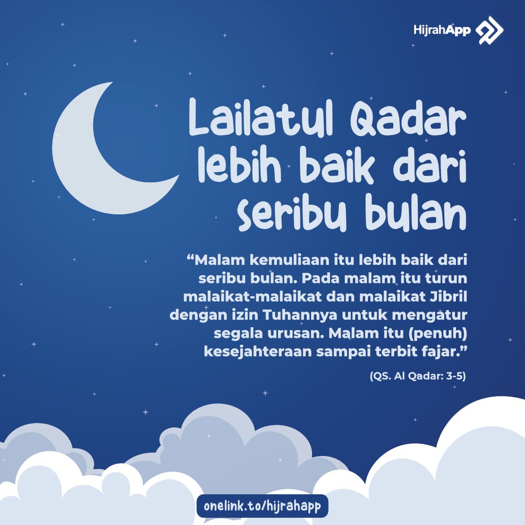 “Sesungguhnya Kami menurunkannya (Al Qur’an) pada suatu malam yang diberkahi. dan sesungguhnya Kami-lah yang memberi peringatan. Pada malam itu dijelaskan segala urusan yang penuh hikmah.” (QS. Ad Dukhan: 3-4). Malam yang diberkahi dalam ayat ini adalah malam lailatul qadar sebagaimana ditafsirkan pada surat Al Qadar. Allah Ta’alaberfirman,