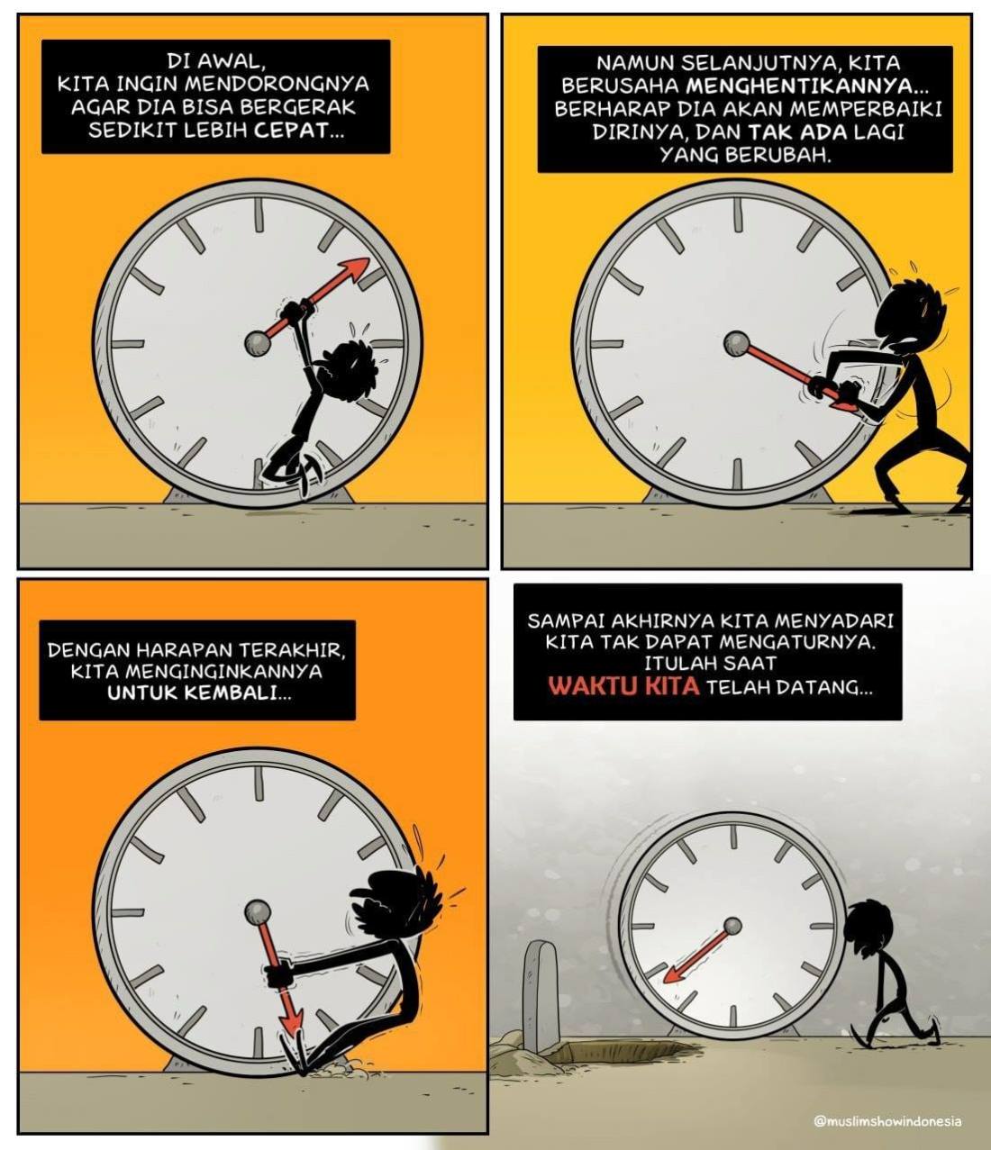 Sejatinya, waktu bagi manusia adalah umur mereka. Waktu merupakan modal bagi manusia untuk kehidupannya yang abadi kelak di akhirat, apakah dia akan berada surga yang penuh kenikmatan ataukah dalam neraka yang penuh siksa yang teramat pedih?