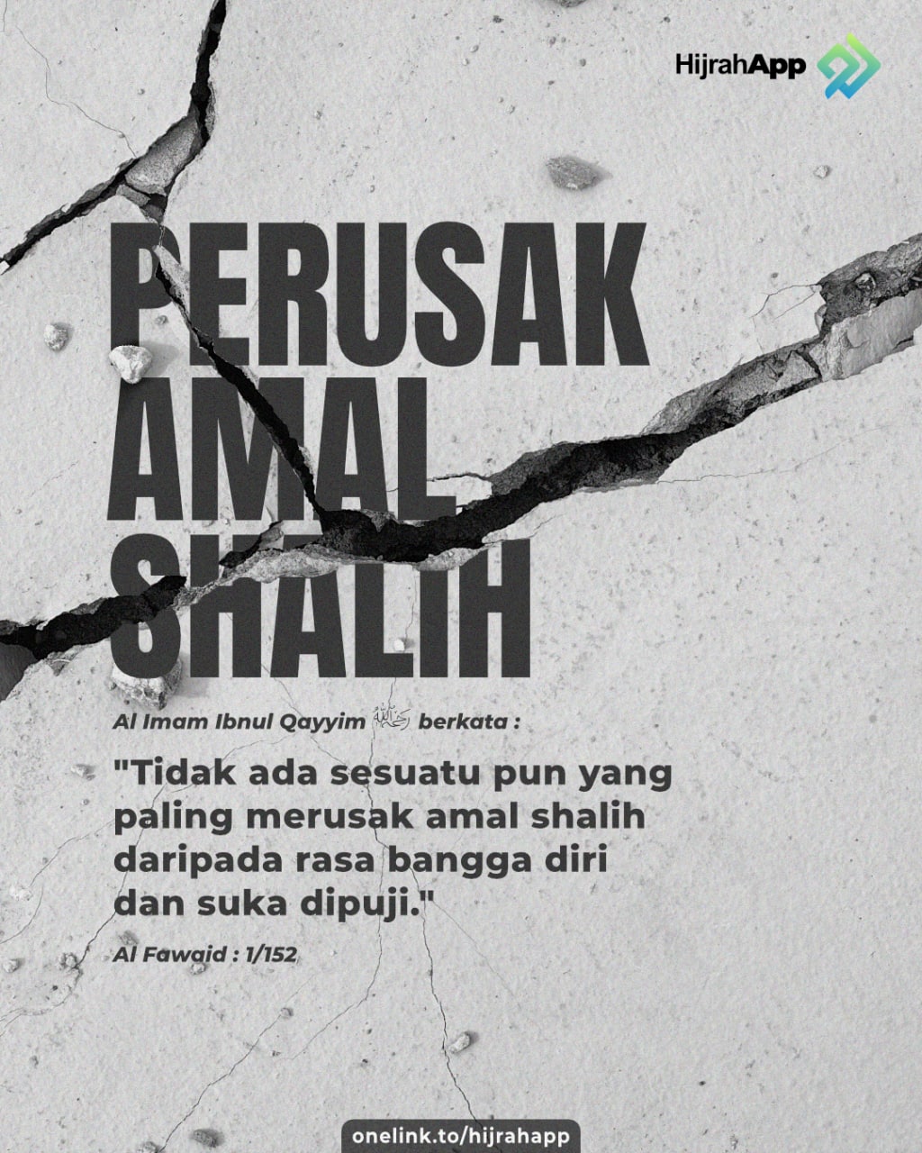 “Tiga perkara yang membinasakan, rasa pelit yang ditaati, hawa nafsu yang diikui dan ujubnya seseorang terhadap dirinya sendiri” (HR at-Thobroni dalam Al-Awshoth no 5452 dan dishahihkan oleh Syaikh Al-Albani dalam As-Shahihah no 1802).