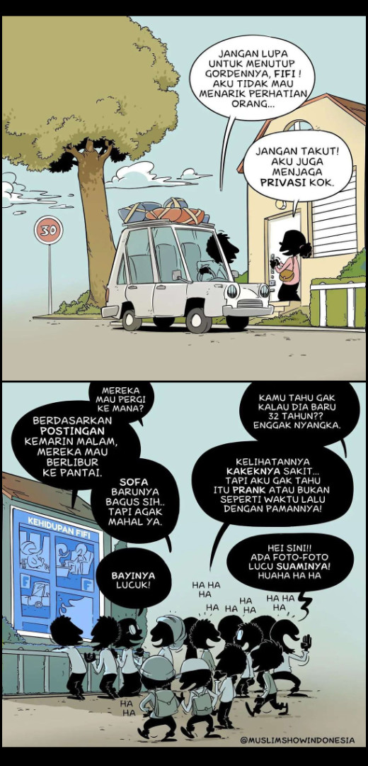 “Yang dimaksud adalah menceburkan diri dalam berita-berita yang dibicarakan orang, dalam hal yang tidak manfaat yang membicarakan aktivitas atau gerak-gerik orang lain.” (Syarh Shahih Muslim, 12: 11)