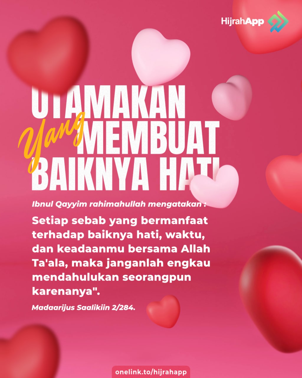 Jika kita perhatikan keadaan manusia sekarang ini, mereka sangat serius dalam memberikan perhatian terhadap masalah-masalah dhohir yang Nampak. Sementara masalah-masalah bathin (hati) mereka melalaikannya padahal permasalahan hati dan memperbaikinya adalah perkara yang sangat menentukan baik dan tidaknya keberadaan seseorang karena tidaklah keadaan seseorang menjadi baik kecuali dengan baiknya hati