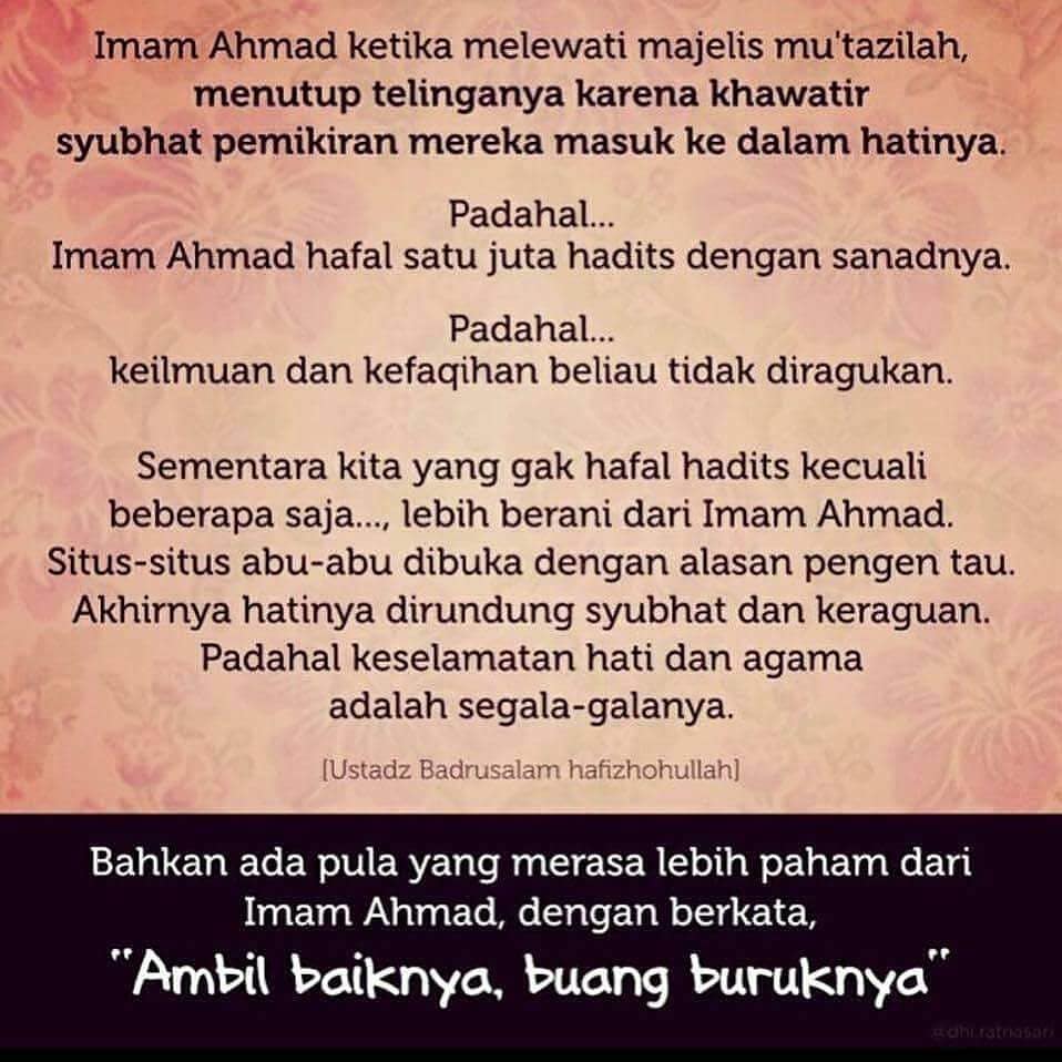 Abu Ishaq al-Fazari rahimahullah berkata, “Sesungguhnya diantara manusia ada orang yang sangat menggandrungi pujian kepada dirinya, padahal di sisi Allah dia tidak lebih berharga daripada sayap seekor nyamuk.” (lihat Ta’thir al-Anfas, hal. 573)