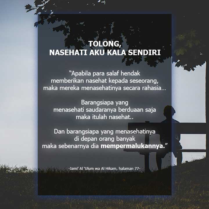Dari Abu Hurairah radhiyallahu’anhu, Rasulullah shallallahu ‘alaihi wa sallam bersabda, “Ada tujuh golongan orang yang akan diberi naungan oleh Allah pada hari ketika tidak ada naungan kecuali naungan dari-Nya. Seorang pemimpin yang adil. Seorang pemuda yang tumbuh dalam [ketaatan] beribadah kepada Allah ‘azza wa jalla. Seorang lelaki yang hatinya bergantung di masjid-masjid. Dua orang lelaki yang saling mencintai karena Allah, mereka berdua bertemu dan berpisah karena-Nya. Seorang lelaki yang diajak oleh seorang perempuan yang memiliki kedudukan dan kecantikan lalu dia berkata, ‘Aku takut kepada Allah’. Seorang lelaki yang bersedekah dengan sembunyi-sembunyi, sampai-sampai tangan kirinya tidak mengetahui apa yang disedekahkan oleh tangan kanannya. Dan seorang lelaki yang mengingat Allah dalam kesendirian lalu mengalirlah air matanya.” (HR. Bukhari dan Muslim, lihat Shahih at-Targhib [1/531])