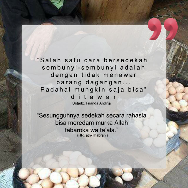 Dari Mu’awiyah bin Haidah radhiyallahu’anhu, Rasulullah shallallahu ‘alaihi wa sallam bersabda, “Sesungguhnya sedekah secara rahasia bisa meredam murka Rabb [Allah] tabaroka wa ta’ala.” (HR. ath-Thabrani dalam al-Kabir, lihat Shahih at-Targhib [1/532])