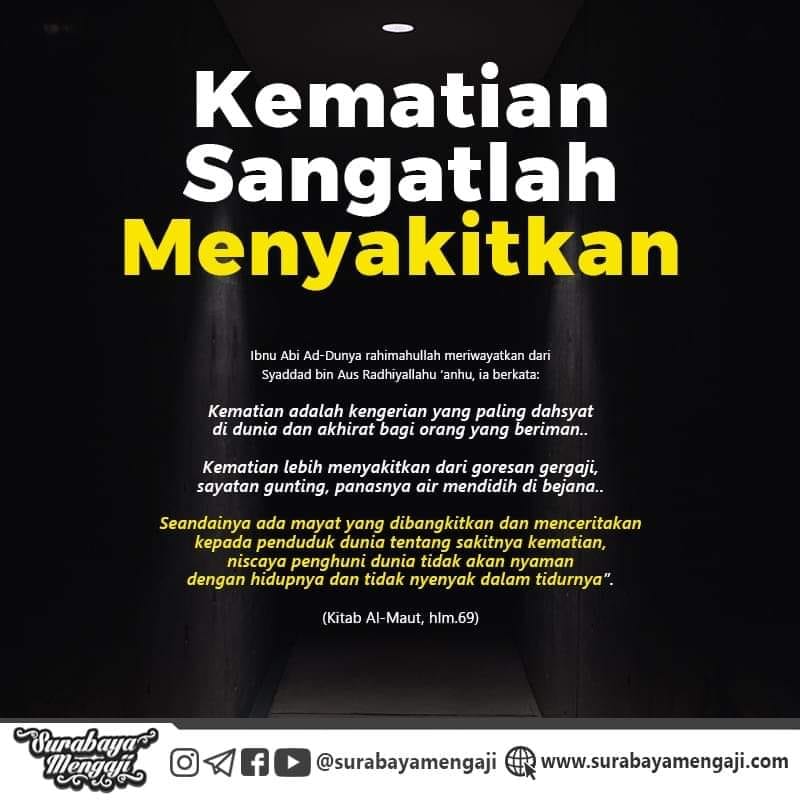 Abu Hurairah radhiyallahu’anhu berkata: Aku pernah mendengar Rasulullah shallallahu ‘alaihi wa sallam bersabda: “Sesungguhnya orang-orang yang pertama kali diadili pada hari kiamat adalah: [1] Seorang lelaki yang berjuang mencari mati syahid. Lalu dia dihadirkan dan ditunjukkan kepadanya nikmat-nikmat yang sekiranya akan diperolehnya, sehingga dia pun bisa mengenalinya. Allah bertanya kepadanya, “Apa yang telah kamu lakukan untuk mendapatkan itu semua?”. Dia menjawab, “Aku berperang di jalan-Mu sampai aku menemui mati syahid.” Allah menimpali jawabannya, “Kamu dusta. Sebenarnya kamu berperang agar disebut-sebut sebagai pemberani, dan sebutan itu telah kamu peroleh di dunia.” Kemudian Allah memerintahkan malaikat untuk menyeretnya dalam keadaan tertelungkup di atas wajahnya hingga akhirnya dia dilemparkan ke dalam api neraka. [2] Seorang lelaki yang menimba ilmu dan mengajarkannya serta pandai membaca/menghafal al-Qur’an. Lalu dia dihadirkan dan ditunjukkan kepadanya nikmat-nikmat yang sekiranya akan diperolehnya, sehingga dia pun bisa mengenalinya. Allah bertanya kepadanya, “Apa yang telah kamu lakukan untuk mendapatkan itu semua?”. Dia menjawab, “Aku menimba ilmu dan mengajarkannya serta aku membaca/menghafal al-Qur’an di jalan-Mu.” Allah menimpali jawabannya, “Kamu dusta. Sebenarnya kamu menimba ilmu agar disebut-sebut sebagai orang alim, dan kamu membaca al-Qur’an agar disebut sebagai qari’. Dan sebutan itu telah kamu dapatkan di dunia.” Kemudian Allah memerintahkan malaikat untuk menyeretnya dalam keadaan tertelungkup di atas wajahnya hingga akhirnya dia dilemparkan ke dalam api neraka. [3] Seorang lelaki yang diberi kelapangan oleh Allah serta mendapatkan karunia berupa segala macam bentuk harta. Lalu dia dihadirkan dan ditunjukkan kepadanya nikmat-nikmat yang sekiranya akan diperolehnya, sehingga dia pun bisa mengenalinya. Allah bertanya kepadanya, “Apa yang telah kamu lakukan untuk mendapatkan itu semua?”. Dia menjawab, “Tidak ada satupun kesempatan yang Engkau cintai agar hamba-Mu berinfak padanya melainkan aku telah berinfak padanya untuk mencari ridha-Mu.” Allah menimpali jawabannya, “Kamu dusta. Sesungguhnya kamu berinfak hanya demi mendapatkan sebutan sebagai orang yang dermawan. Dan sebutan itu telah kamu dapatkan di dunia.” Kemudian Allah memerintahkan malaikat untuk menyeretnya dalam keadaan tertelungkup di atas wajahnya hingga akhirnya dia dilemparkan ke dalam api neraka.” (HR. Muslim)