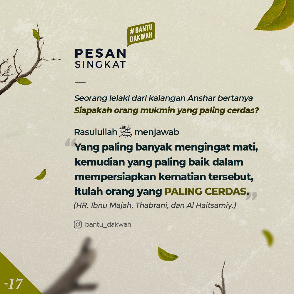 Setiap yang bernyawa akan merasakan mati. Dan hanya pada hari kiamat sajalah diberikan dengan sempurna balasanmu. Barangsiapa dijauhkan dari neraka dan dimasukkan ke dalam surga, sungguh, dia orang yang sukses (menang). Kehidupan dunia hanyalah kesenangan yang memperdaya.”[Ali ‘Imrân/3:185]