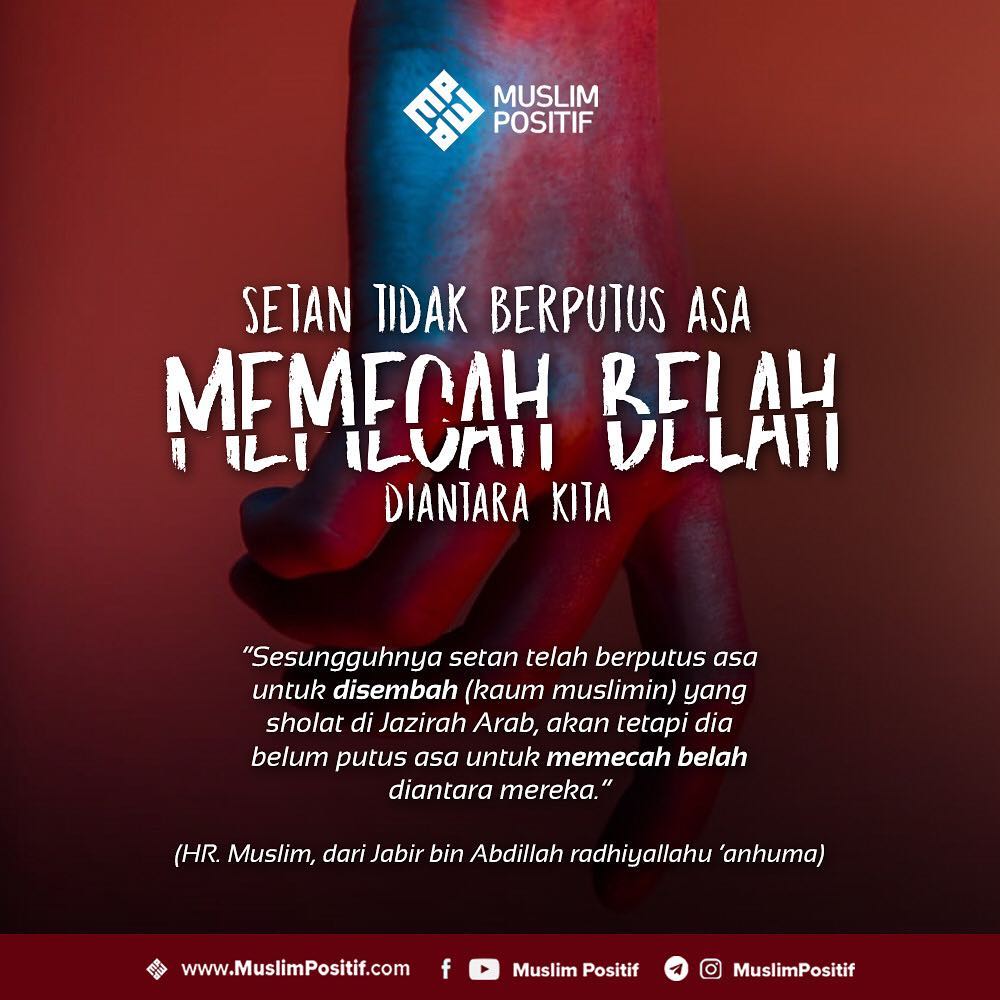Kehidupan masyarakat yang terpecah-belah selalu terpencar. Setan mengalami frustrasi untuk disembah oleh para penyembahnya di Jazirah Arab, tetapi dia merasa puas dengan memprofokasi antar mereka. Sebab bagi setan sangat sulit menguasai suatu kaum kecuali setelah mereka terpecah belah. Itulah sebabnya, Nabi –shallallahu alaihi wa sallam- berpesan :