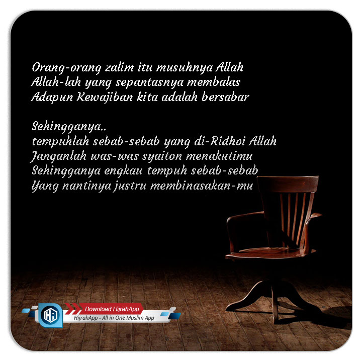 “Yang demikian itu, adalah disebabkan perbuatan yang dikerjakan oleh kedua tangan kamu dahulu dan sesungguhnya Allah sekali-kali bukanlah penganiaya hamba-hamba-Nya”. (Al-Hajj : 10) [Al-Kaba’ir hal. 39, Darun Nadwah]