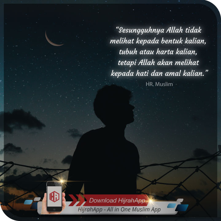 “Sesungguhnya Allah tidak melihat kepada bentuk kalian, tubuh atau harta kalian, tetapi Allah akan melihat kepada hati dan amal kalian.”