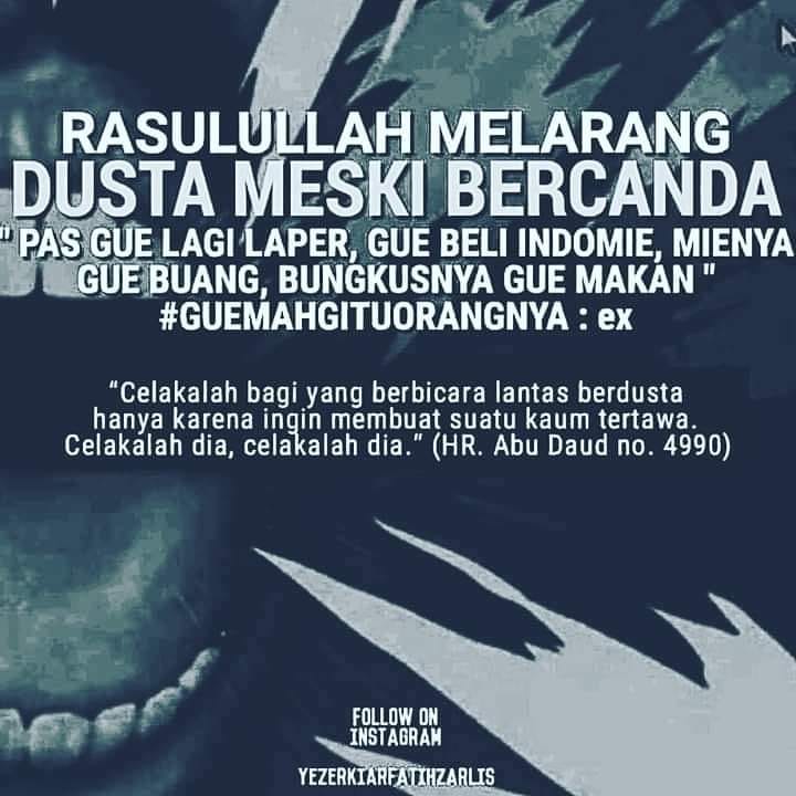 Celakalah seseorang yang berbicara dusta untuk membuat orang tertawa, celakalah ia, celakalah ia. [12]
