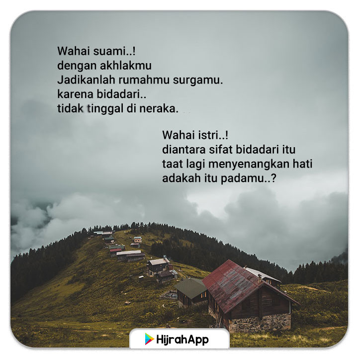 “Bila seorang istri telah mendirikan shalat lima waktu, berpuasa bulan Ramadan, menjaga kesucian dirinya, dan taat kepada suaminya, niscaya kelak akan dikatakan kepadanya, ‘Silakan engkau masuk ke surga dari pintu mana pun yang engkau suka.’” (Hr. Ahmad dan lainnya)