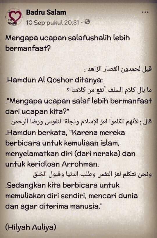“Seandainya seseorang mendengar ada orang lain yang lebih taat pada Allah dari dirinya, sudah selayaknya dia sedih karena dia telah diungguli dalam perkara ketaatan.” (Latho-if Ma’arif, hal. 268)