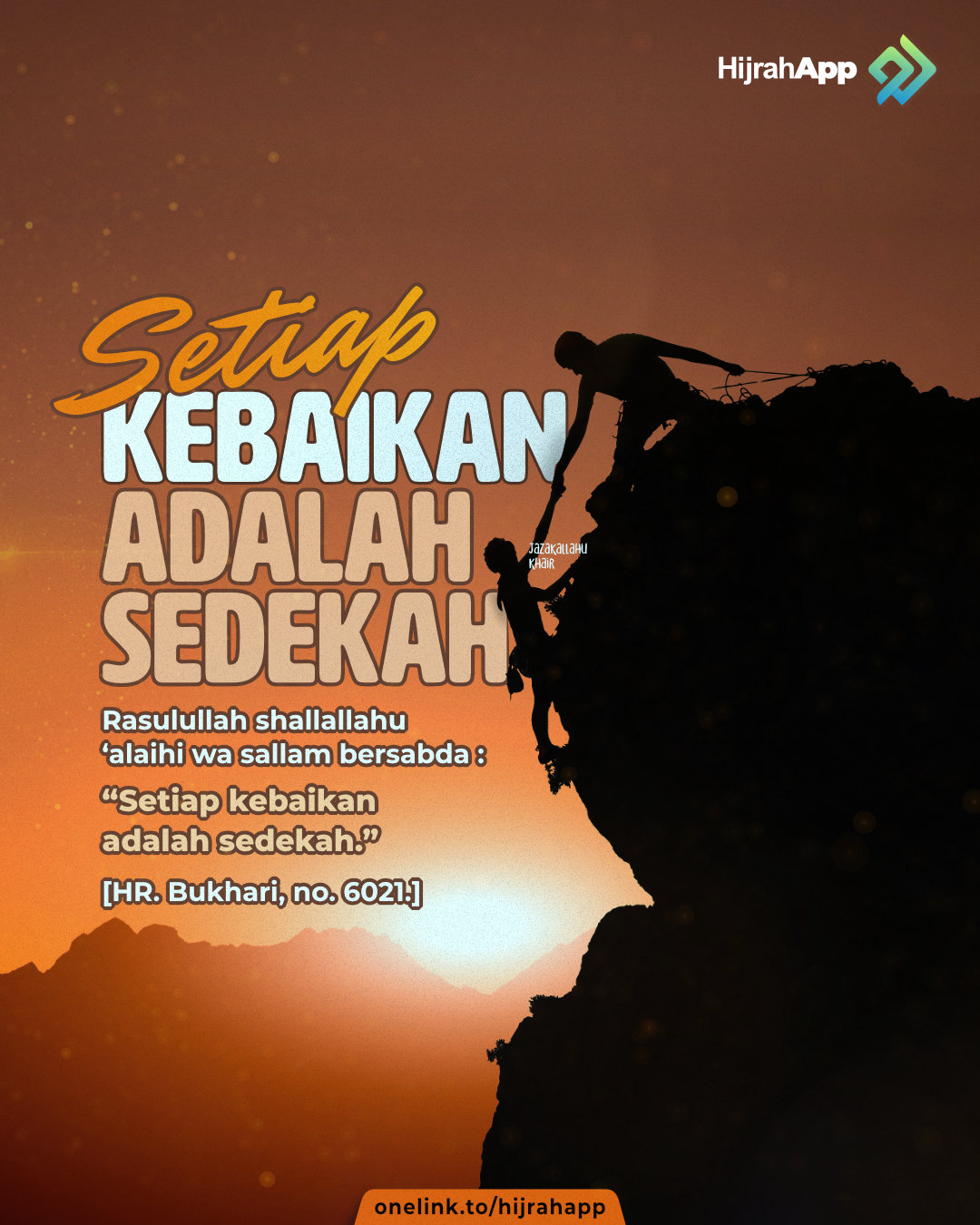 “Siapa yang diberikan kebaikan, lalu ia katakan kepada orang yang memberikan kebaikan tersebut, “Jazakallah khoiron (semoga Allah membalas dengan kebaikan)”, seperti itu sudah sangat baik dalam memuji.” (HR. Tirmidzi, no. 2035 dan An-Nasa’i dalam Al-Kubro, no. 10008, juga dalam ‘Amal Al-Yaum wa Al-Lailah, no. 180. Al-Hafizh Abu Thahir mengatakan bahwa sanad hadits ini hasan).