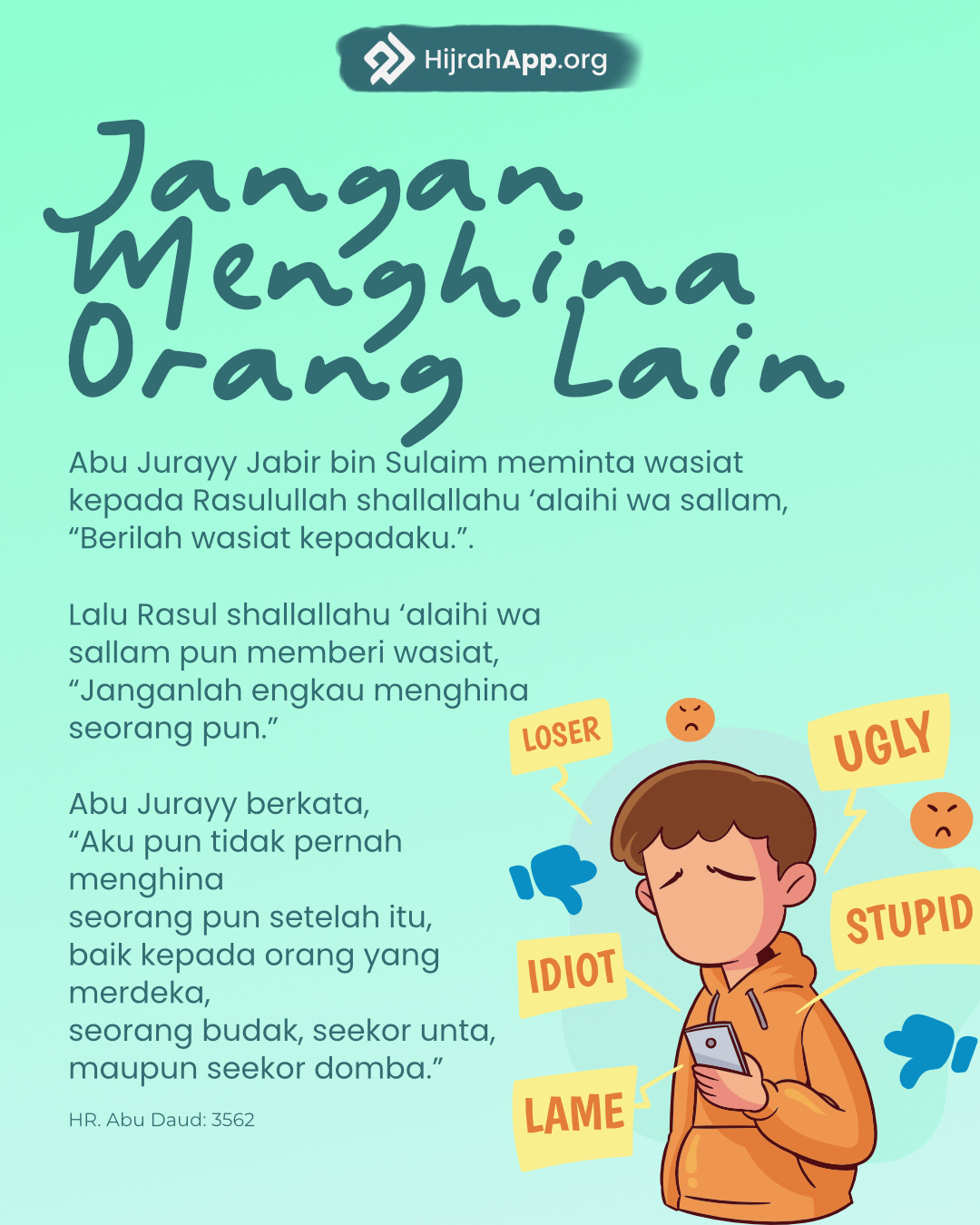 [6] HR. Al-Bukhari no. 6320, Muslim no. 2714, Abu Dawud no. 5050 dan at-Tirmidzi no. 3401)-penj.