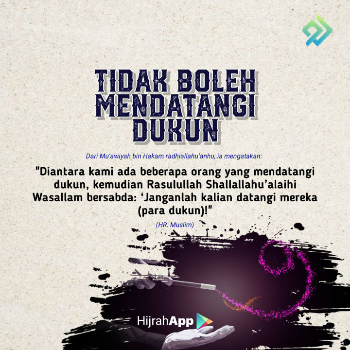 Sebagaimana disebutkan dalam sebuah hadits yang panjang yang dikeluarkan oleh Imam Bukhari dan Imam Muslim dalam Shohih keduanya, ketika Rasulullah Shallallahu’alaihi wasallam menceritakan tentang beberapa kejadian di malam Isra’, Beliau bersabda: “kemudian saya melihat sekumpulan manusia yang sangat besar (jumlahnya), dikatakan kepadaku “mereka itu adalah umatmu, diantara mereka ada 70.000 orang yang masuk surga tanpa hisab dan tanpa adzab –sampai perkataan beliau- “mereka adalah orang-orang yang tidak minta diruqyah, tidak melakukan kay (pengobatan dengan besi panas), tidak melakukan tathayur (menganggap bernasib sial dengan burung atau yang lainnya) hanya kepada Rabb merekalah mereka bertawakal”.