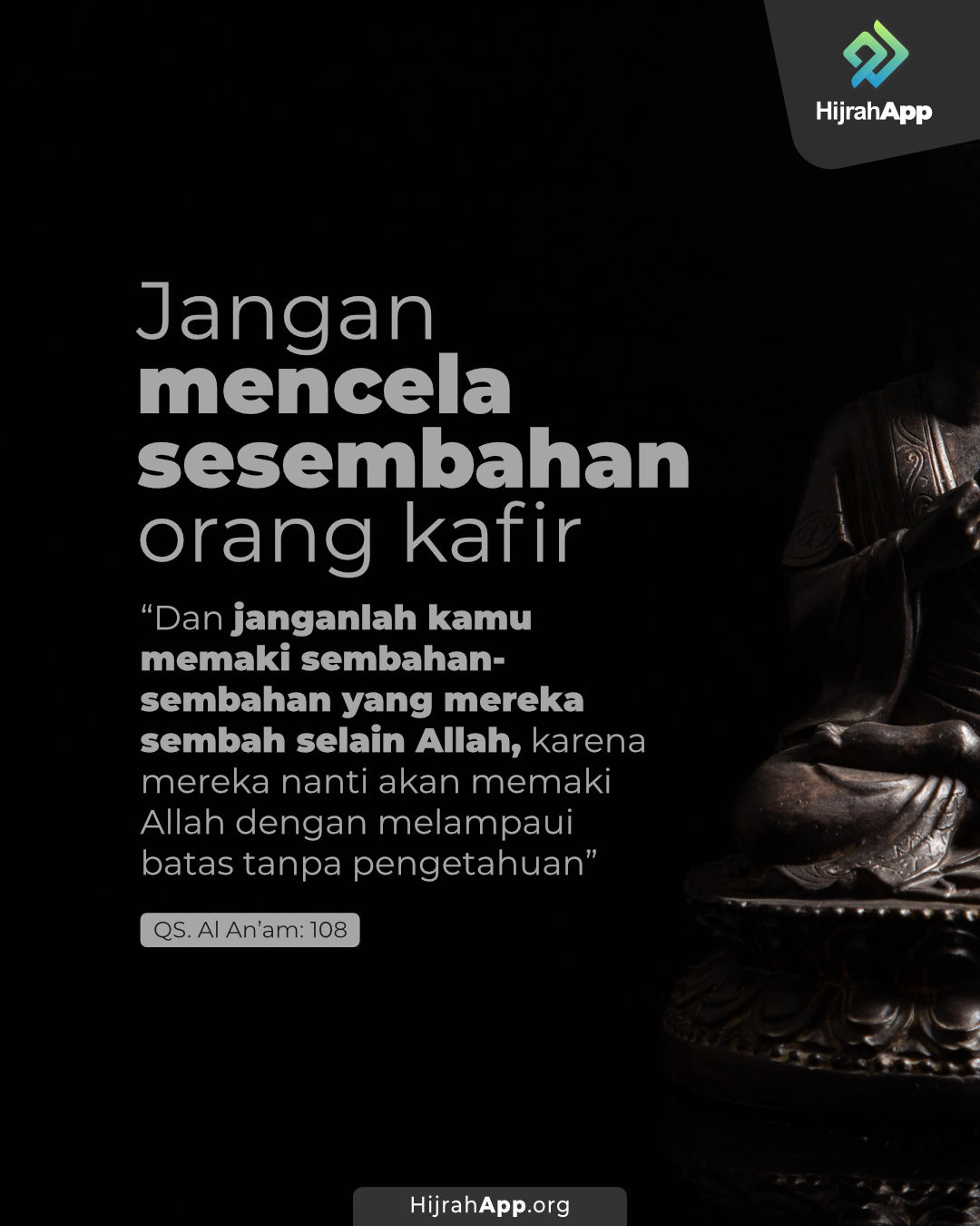 وَلَا تَسُبُّوا الَّذِينَ يَدْعُونَ مِنْ دُونِ اللَّهِ فَيَسُبُّوا اللَّهَ عَدْوًا بِغَيْرِ عِلْمٍ