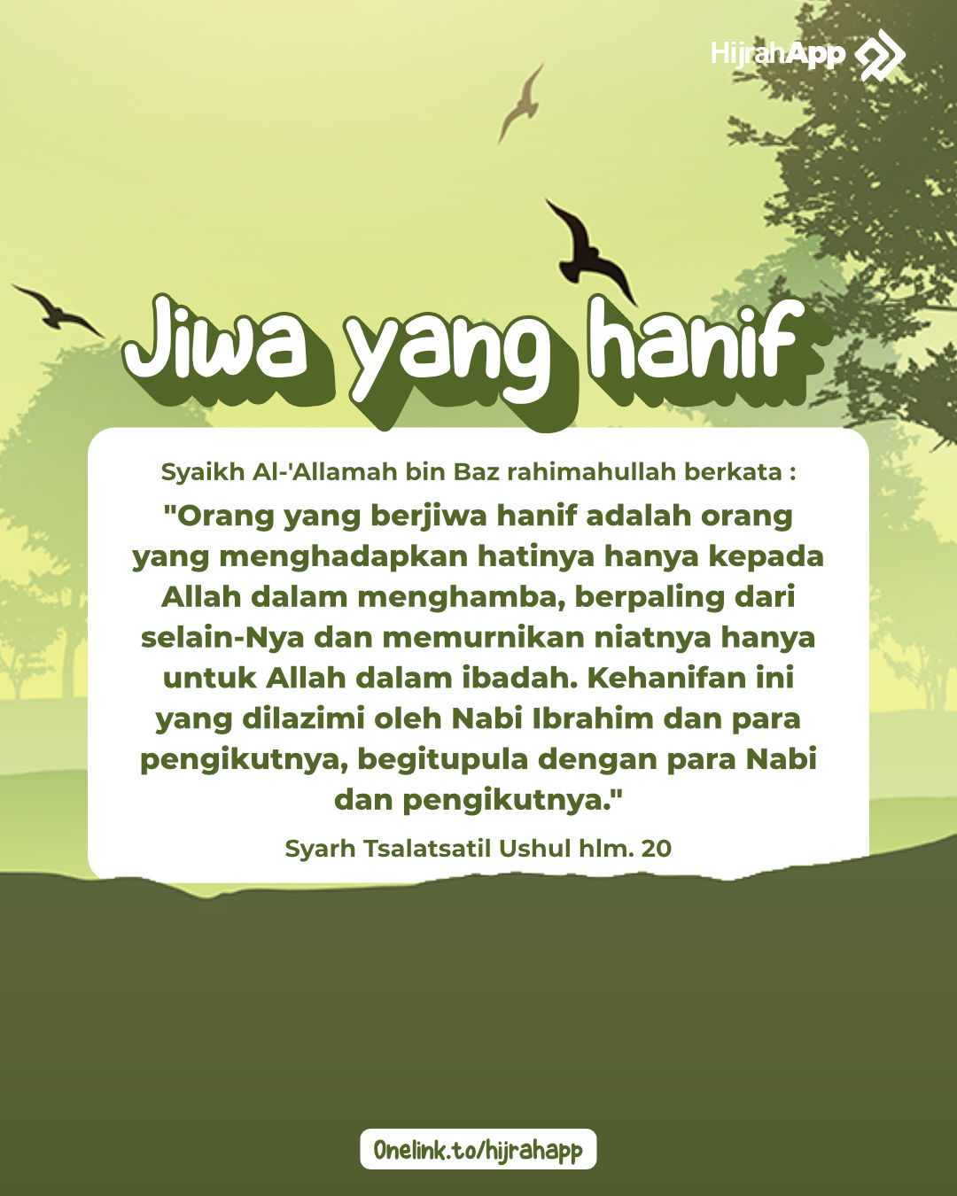 Ibnu Hisyam menyebutkan empat orang yang masih berada di atas agama yang hanif ini. Mereka adalah Waraqah bin Naufal, Ubaidullah bin Jahsy, Utsman bin al-Huwairits, dan Zaid bin Amr bin Nufail. Saat masyarakat jahiliyah berkumpul di sisi berhala-berhala mereka dalam rangka merayakan hari besar, salah seorang dari empat orang ini mengatakan, “Ketauhilah. Demi Allah, kaum kalian ini tidak berada di atas apapun. Mereka telah jatuh pada penyimpangan dari agama bapak mereka, Ibrahim. Batu-batu itu tidak mendengar, tidak melihat, tidak bisa membahayakan, dan tidak bisa memberi manfaat. Wahai teman-teman, carilah untuk diri kalian agama yang benar. Karena demi Allah, kaum kalian ini tidak berada di atas kebenaran.” Kemudian mereka berpencar mencari orang-orang yang masih berada di atas agama yang hanif. Agama Nabi Ibrahim ‘alaihissalam (Ibnu Hisyam: as-Sirah an-Nabawiyah, 1/223).