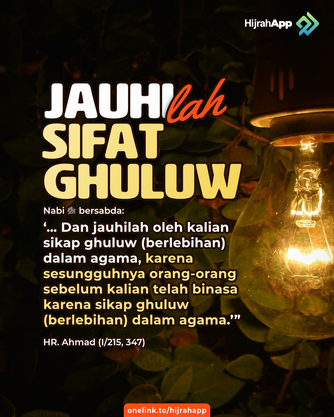 ‘… Dan jauhilah oleh kalian sikap ghuluw (berlebihan) dalam agama, karena sesungguhnya orang-orang sebelum kalian telah binasa karena sikap ghuluw (berlebihan) dalam agama.’”