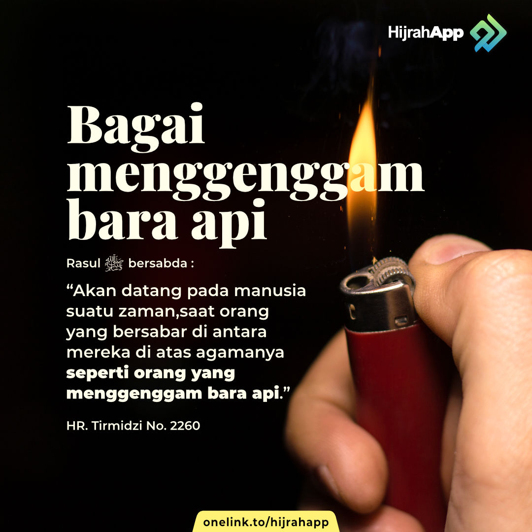“Akan datang pada manusia suatu zaman,saat orang yang bersabar di antara mereka di atas agamanya seperti orang yang menggenggam bara api.”