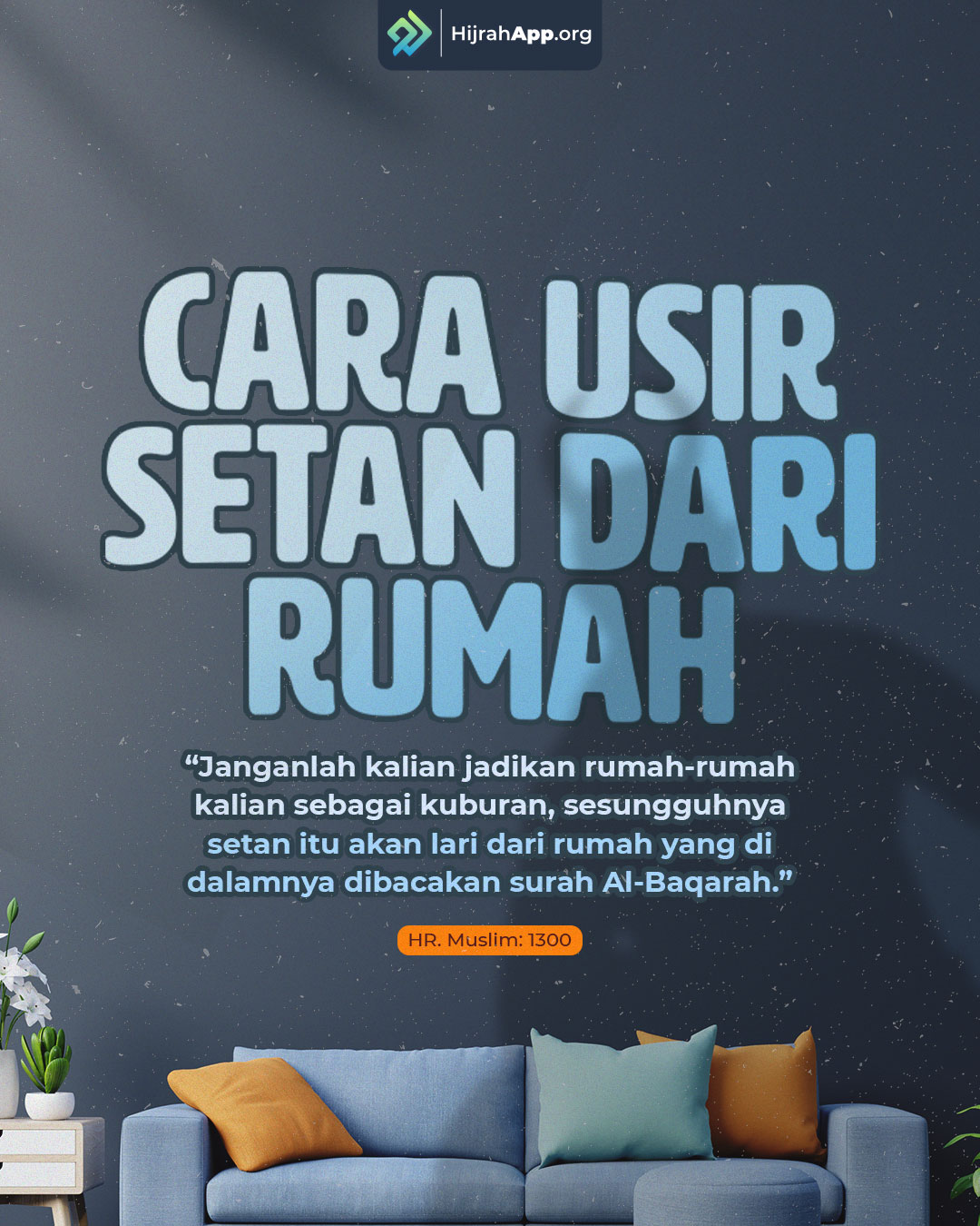 Jadikan rumah Anda seperti taman-taman malaikat penebar rahmat, bukan tempat peristirahatan yang nyaman bagi setan. Hiasi rumah Anda dengan berbagai ketaatan dan amal shaleh. Agar yang menemani Anda juga makhluk yang sholeh. Hiasi rumah Anda dengan bacaan Alquran, shalat, kajian mengupas halal-haram, dan lantunan suara langit lainnya.