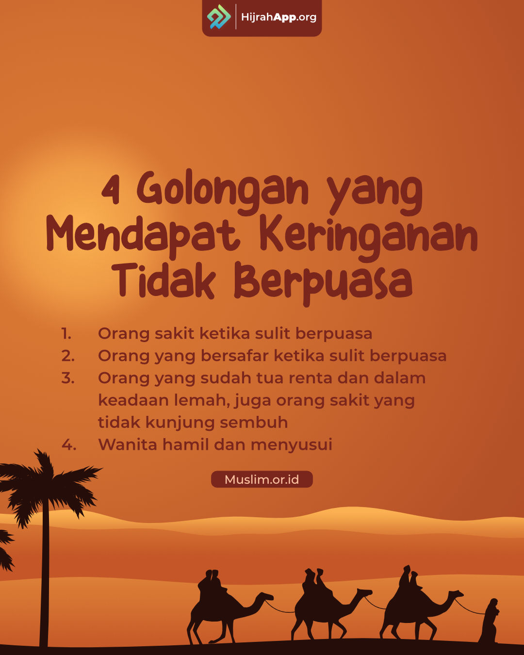 Sumber: https://muslim.or.id/4240-4-golongan-yang-mendapat-keringanan-tidak-berpuasa.html