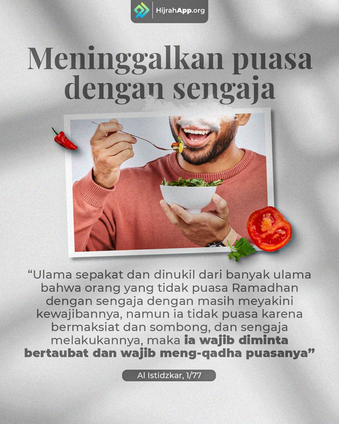 “Barangsiapa yang makan di awal siang, maka makanlah pula di akhir siang.”[8] Jadi, jika di pagi harinya tidak berpuasa, maka di siang atau sore harinya pun tidak perlu berpuasa.[9]