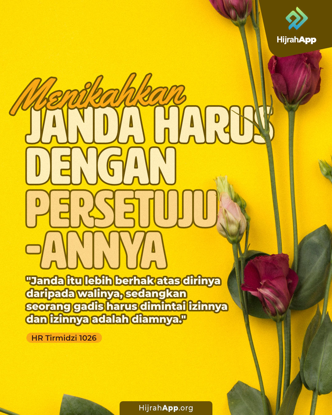 “Janda tidak boleh dinikahkan sehingga diminta perintahnya, dan gadis tidak boleh dinikahkan sehingga diminta izinnya.”