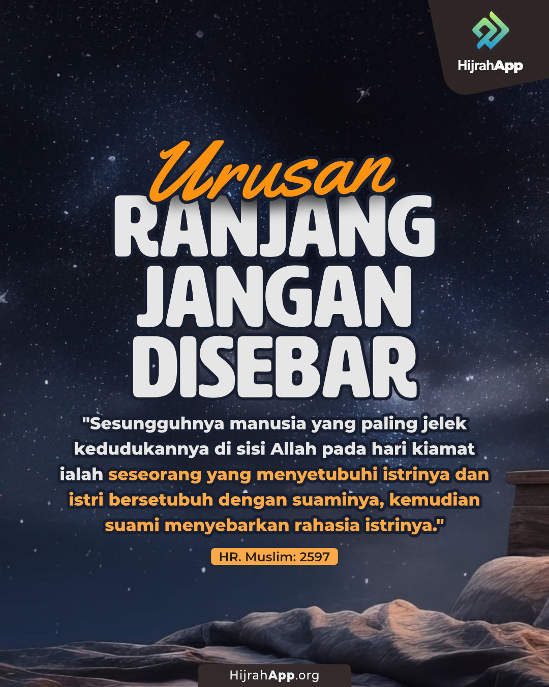 “Wanita dinikahi karena empat perkara: karena hartanya, keturunannya, kecantikannya dan agamanya; maka pilihlah yang taat beragama, niscaya engkau beruntung.”[3]
