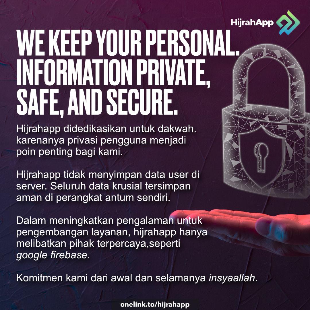 Hijrahapp didedikasikan untuk dakwah. karenanya tidak ada tempat untuk komersialisasi, distraksi apalagi intervensi. Hijrahapp, dengan izin Allah, akan selamanya gratis, tanpa iklan & tanpa titipan kepentingan.