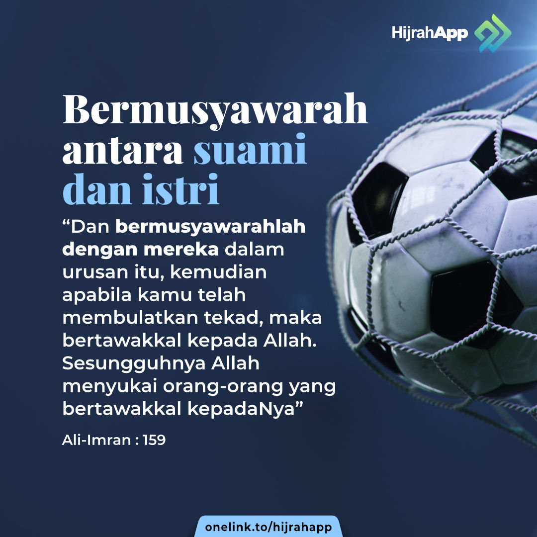 “Dan bermusyawarahlah dengan mereka dalam urusan itu, kemudian apabila kamu telah membulatkan tekad, maka bertawakal kepada Allah. Sesungguhnya Allah menyukai orang-orang yang bertawakkal kepadaNya” [Ali-Imran : 159]