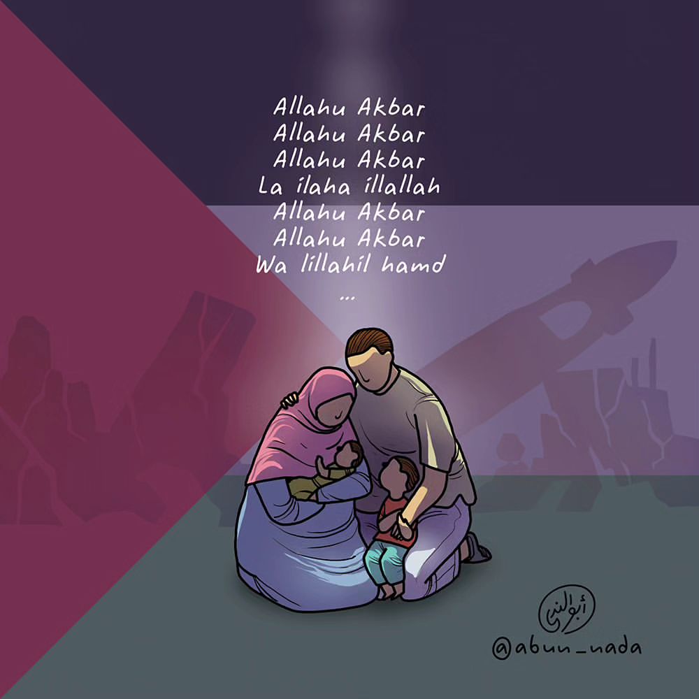 Di tengah himpitan keadaan dan bayang-bayang kematian, bisa jadi takbiran saudara-saudara kita di Palestina jauh lebih khusyuk dan penuh penghayatan. Takbiran yang penuh pengagungan. Yang menebalkan tawakal dan menambah kokohnya iman.