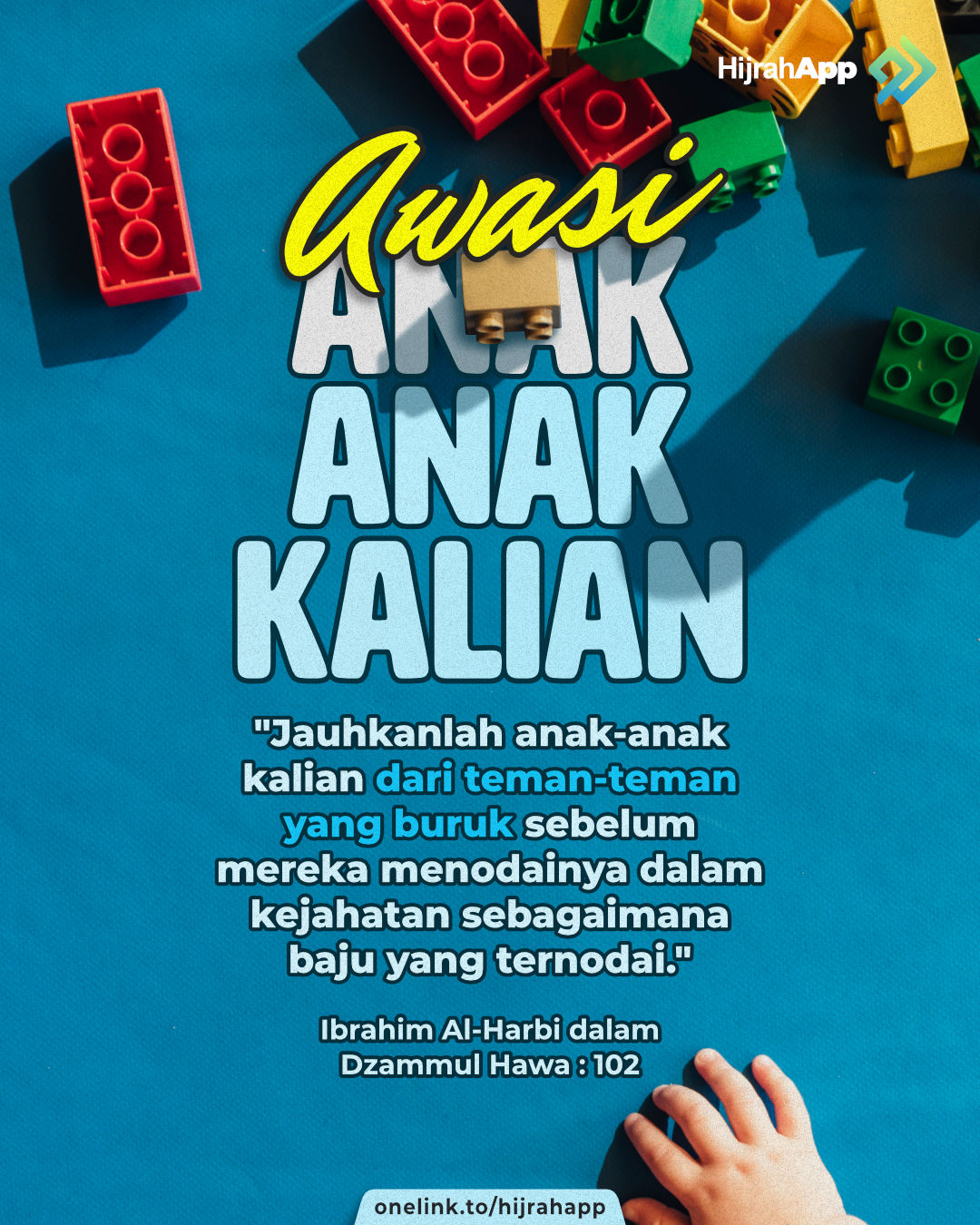 Sebagai orang tua, tentu kita sangat menjaga pendidikan anak kita. Bersama kita terutama di rumah, kita ajarkan kebaikan, adab dan agama. Akan tetapi terkadang kita kaget dengan perubahan anak kita setelah keluar bermain dengan teman-temannya dan terpengaruh, misalnya: